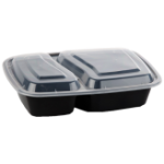 45 Oz 3 Compartment Round Black Base Container And Lids